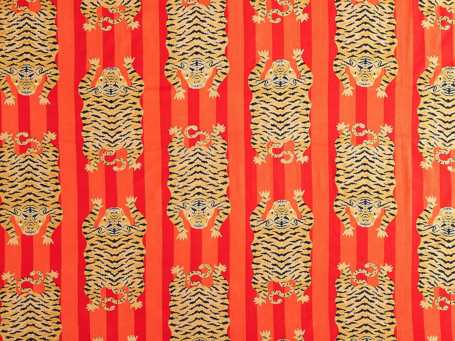"The Tiger" Tibetan Tiger Red & Pink Striped Tablecloth