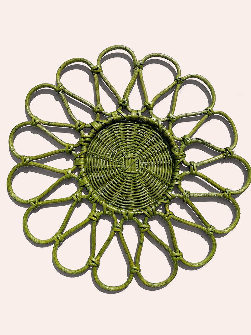 Hand weaved natural rattan placemat in a beautifully intricate design and dyed in a forest green colour way. Hand made by our artisans in Hanoi, Vietnam.
