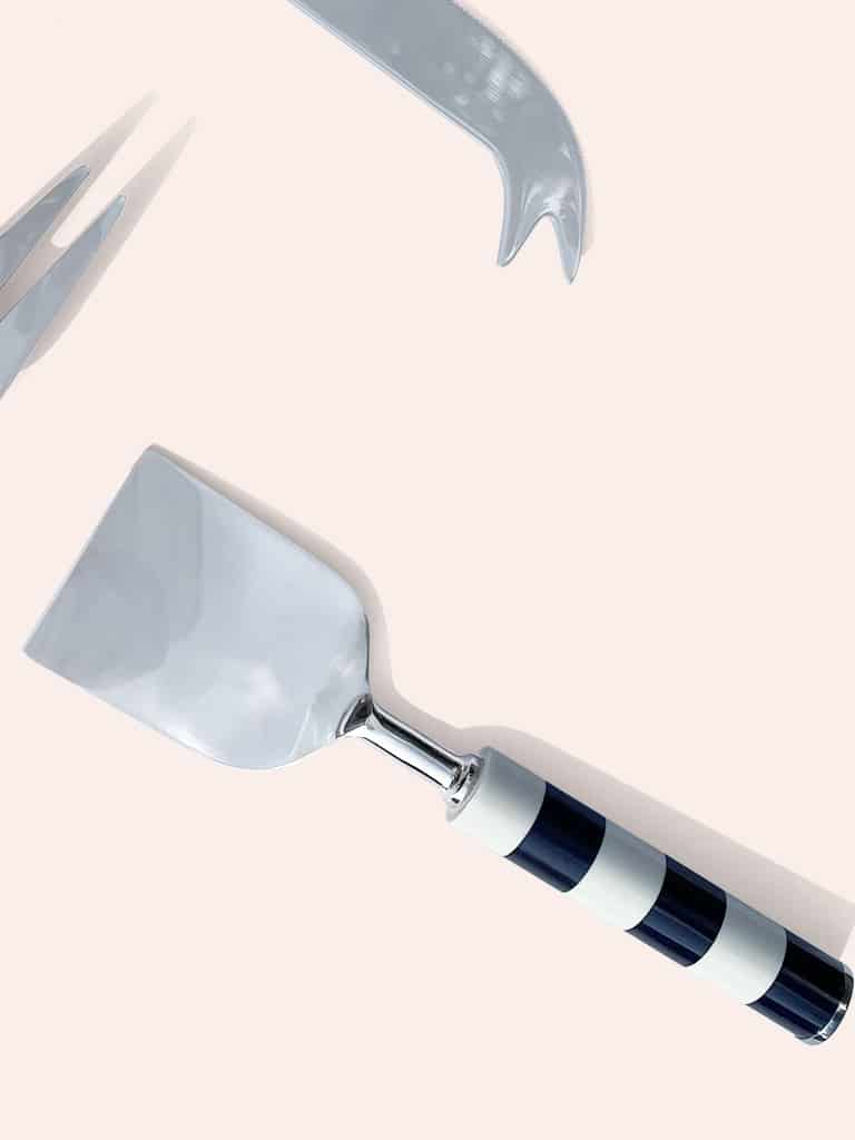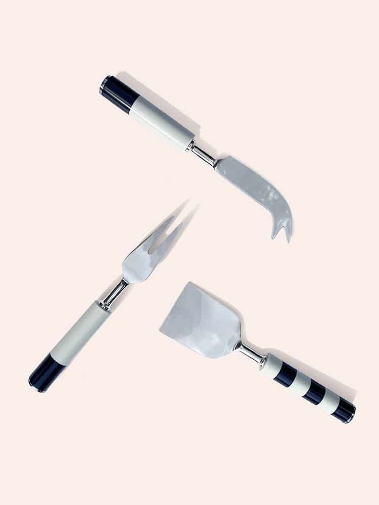 Our navy and white striped resin and stainless steel cheese knives (set of 3) will see you through your cheese course and delight your guests.